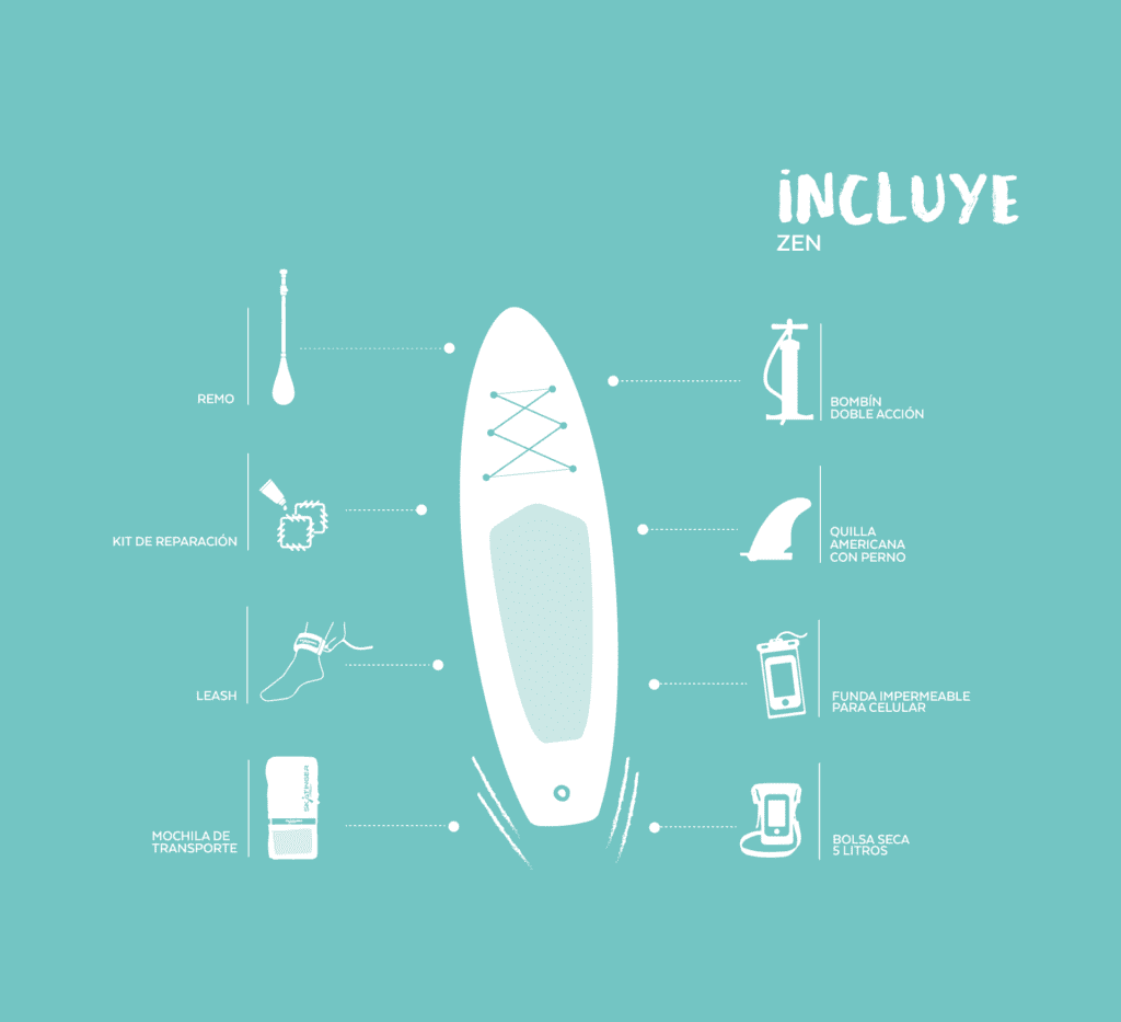 La tabla de SUP. posee un peso aproximado de 9,5kg, además permite la carga de un rider o usuario con un peso recomendado de hasta 195Kg de peso