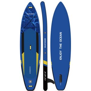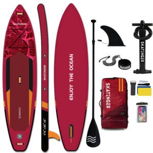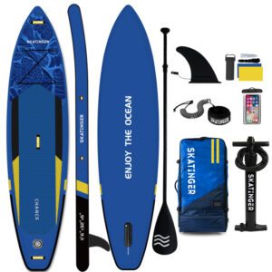 Súper ancha y ultra estable de 35 pulgadas para proporcionar mejor equilibrio: Esta tabla de SKATINGER está hecha con la proporción dorada, 11´pies y 6 pulgadas del largo x 35 pulgadas de ancho x 6 pulgadas de espesor. Con una cubierta y una nariz más ancha, puede soportar hasta 195Kg. Un ancho adicional de 3 pulgadas (comparado a una tabla estándar de 32 pulgadas para proporcionar una mejor estabilidad y un equilibrio llamativo, la tabla de SUP puede acomodar a 2 adultos, en familia con niños o mascotas, personas grandes y grandes, ideal para yoga, pesca, surf, esnórquel.